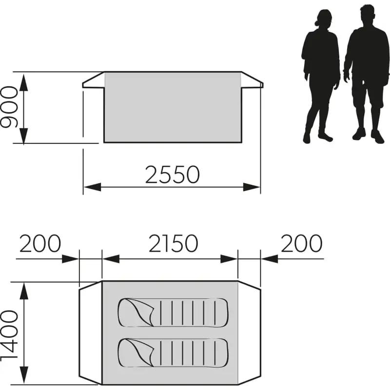 | Innertelt mål: | 255 x 140 x 90 cm |