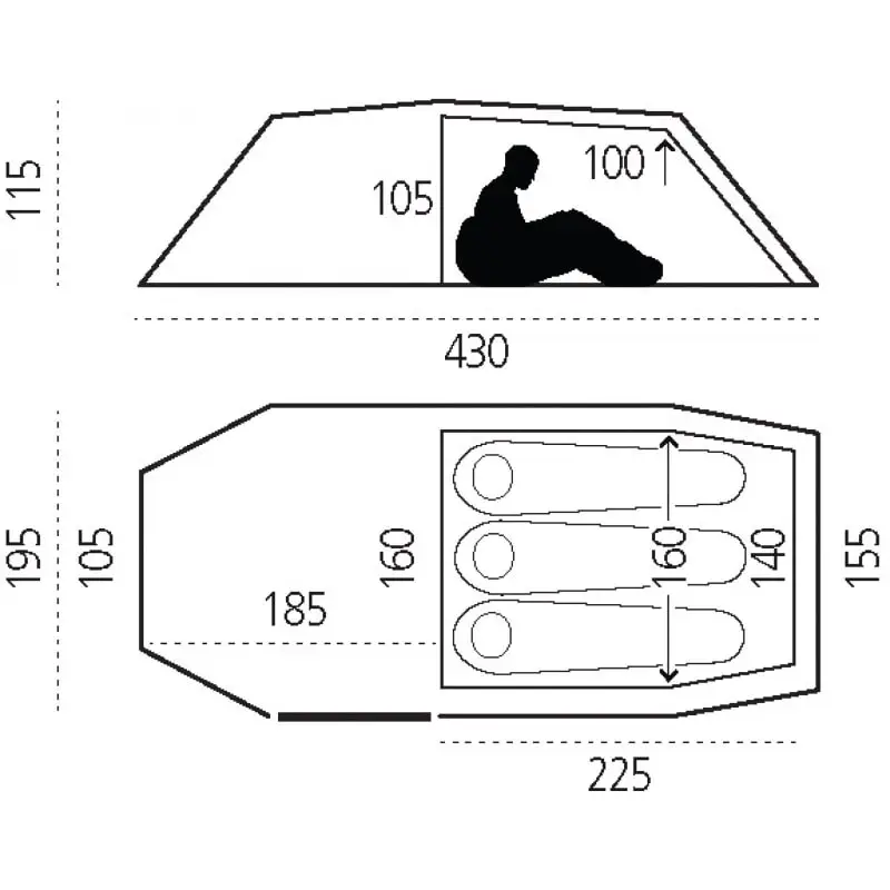 | Innertelt mål: | 225 x 160 x 105 cm |