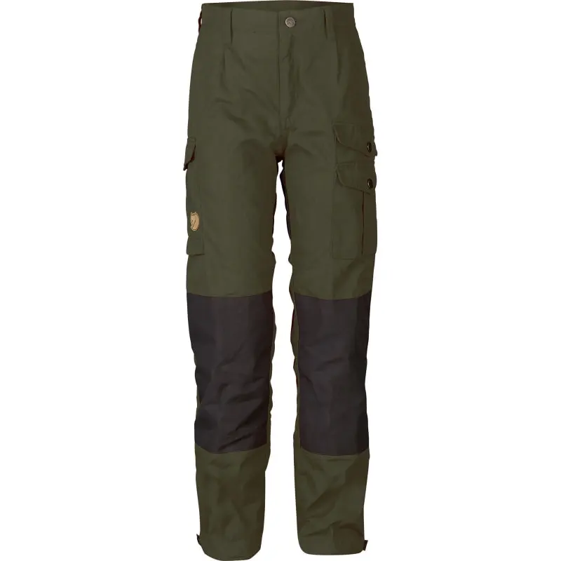 Fjällräven Vidda barnebukse er en turbukse med høy midje og tradisjonel friluftsbukse passform. Forsterkning på bak og knær og justeringer med knepping i benslutningen.