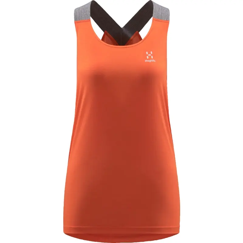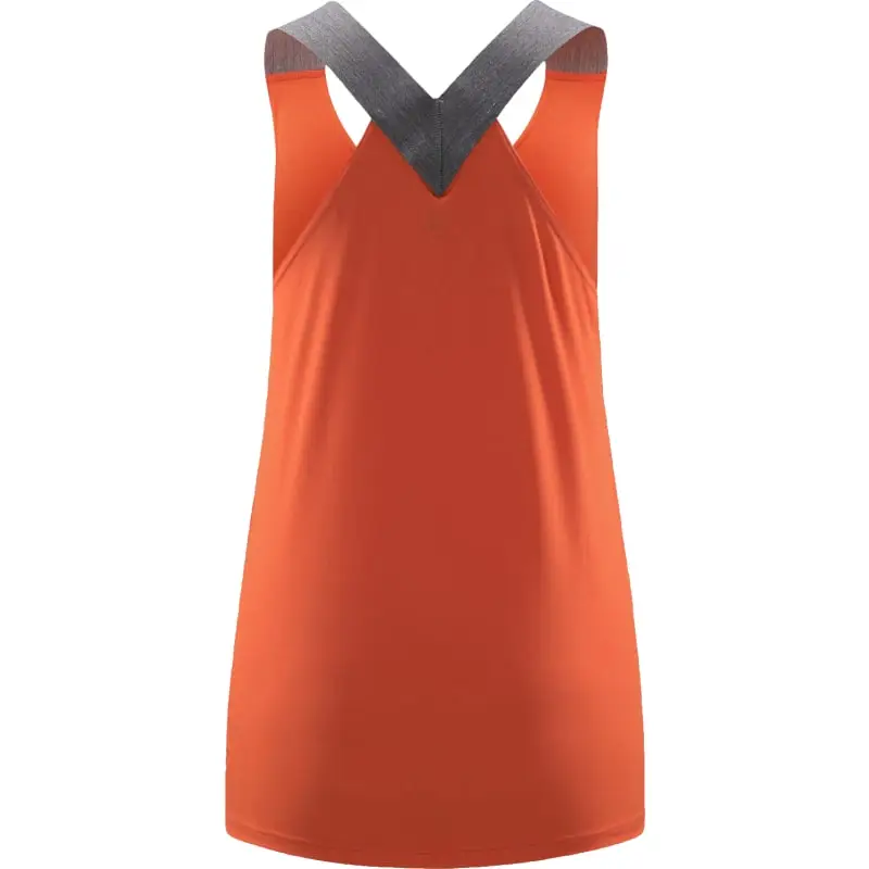 Women’s Ridge Tank fra Haglöfs. Denne singleten er laget av et resirkulert og svært fukttransporterende materiale, og den passer utmerket til aktiviteter med høy puls under varme forhold. Damestørrelser.