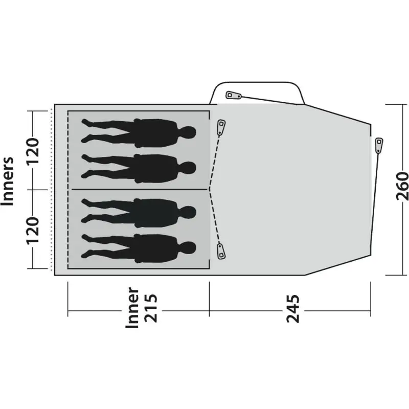 | Innertelt mål: | 215 x 240 x 190 cm |
