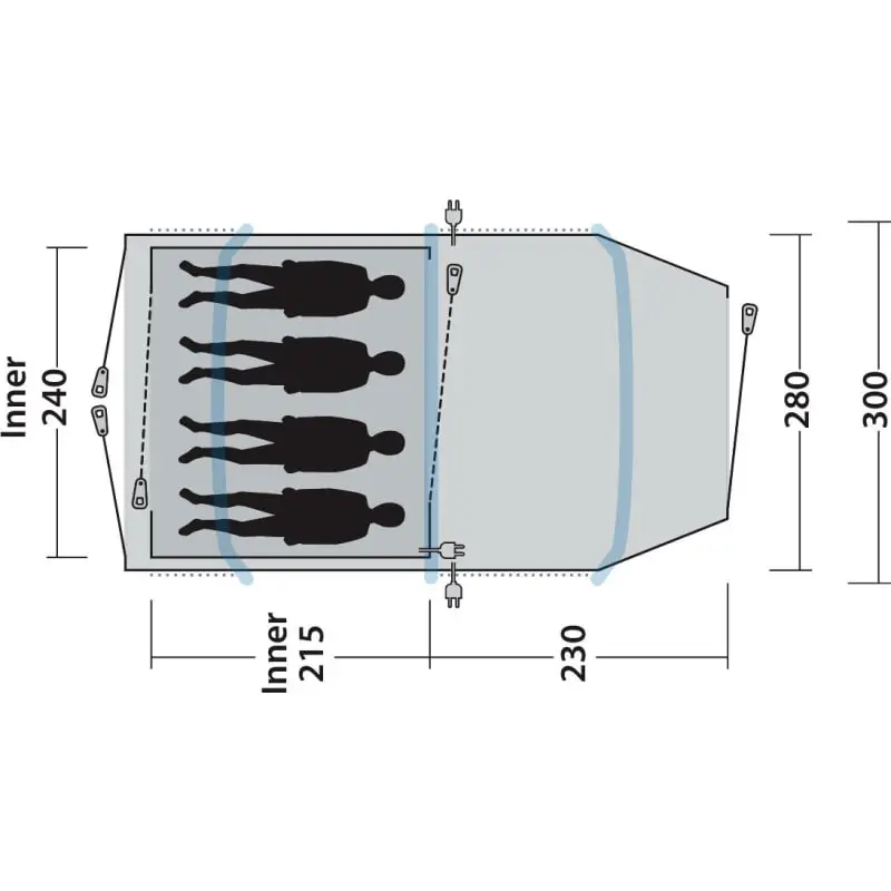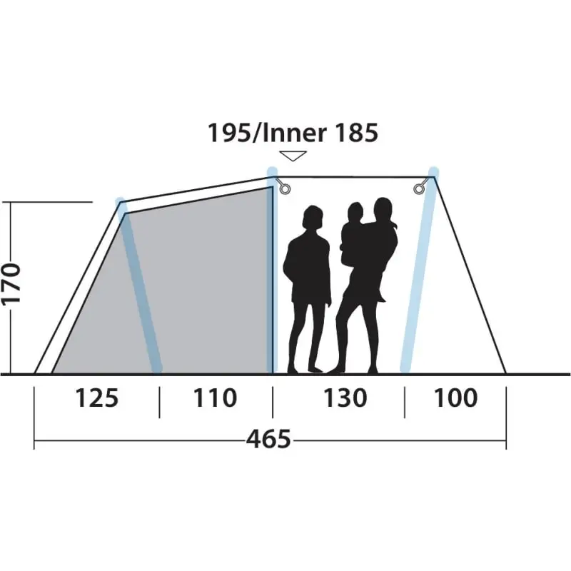 | Innertelt mål: | 215 x 240 x 185 cm |